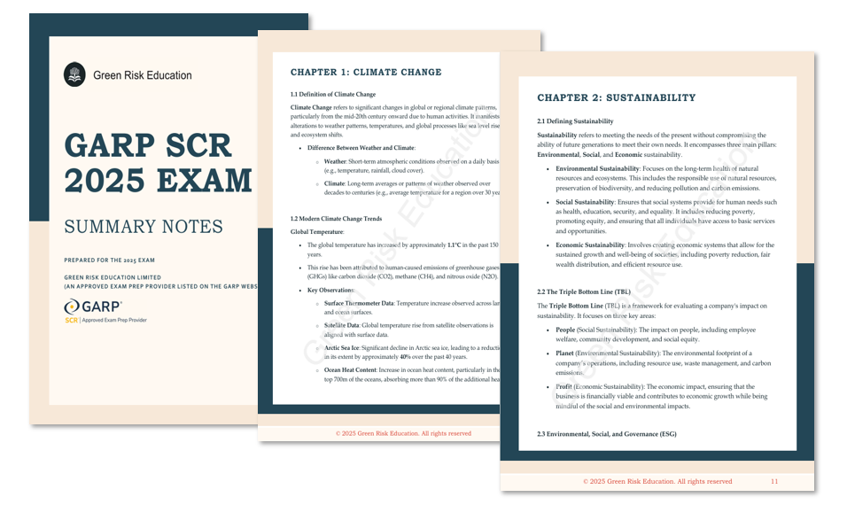 Green Risk Education is a listed Exam Preparation Provider (EPP) for GARP SCR and is on the GARP website. However, it's important to clarify that while we are a recognized EPP, GARP does not specifically endorse or promote us, or review the accuracy of our educational offerings. They don’t endorse any pass rates that we or any other EPP may claim. GARP also does not assume responsibility for any fees or costs paid to us or any other EPP.